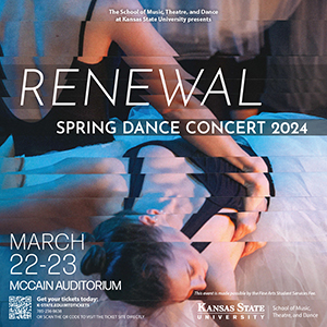 Kansas State University's School of Music, Theatre, and Dance presents "Reflections, Spring Dance Concert '23" at 7:30 p.m. Friday, March 31, and Saturday, April 1, in McCain Auditorium.